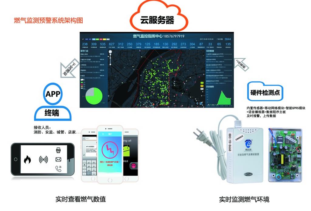 智能GSM獨立語音型燃氣泄漏(lòu)探測器(qì)分為探測器端、雲(yún)服務器端(duān)、用戶手機APP或PC端三個(gè)部分(fèn)組成,下麵(miàn)就為您分別介紹各(gè)個部分是怎樣工作的以及各部分之間是如何通訊鏈接的。